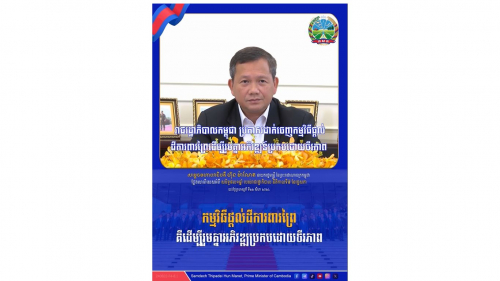 នៅយប់ថ្ងៃព្រហស្បតិ៍ ទី២២ ខែសីហា ឆ្នាំ២០២៤ សម្តេចមហាបវរធិបតី ហ៊ុន ម៉ាណែត នាយករដ្ឋមន្រ្តី នៃព្រះរាជជាណាចក្រកម្ពុជា បានថ្លែងសារពិសេសអំពីសមិទ្ធផល១ឆ្នាំ របស់រាជរដ្ឋាភិបាល...