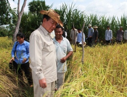 ចេញពីចំការបន្លែនៅក្រុងសេរី សោភ័ណ្ឌ បានបន្តដំណើរចុះពិនិត្យស្ថានភាពការលិចលង់ដំណាំស្រូវដោយទឹកជំនន់កន្លងមក នៅភូមិក្រមុល ឃុំរហាត់ទឹក ស្រុកមង្គលបុរី។ តាមរបាយការណ៍របស់មន្ទីរឲ្យដឹងថាមានផ្ទៃដីចំនួនជាង...