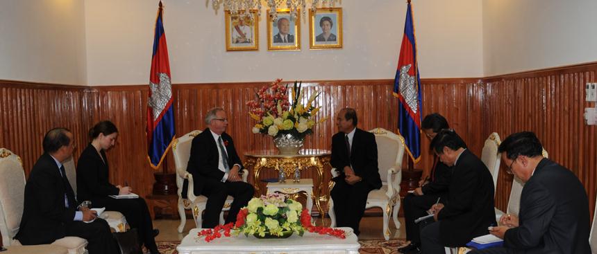 ឯកឧត្តមបណ្ឌិត អ៊ុក រ៉ាប៊ុន រដ្ឋមន្ត្រីក្រសួងកសិកម្ម រុក្ខាប្រមាញ់ និងនេសាទ បានសម្តែងនូវកិច្ចស្វាគមន៍យ៉ាងកក់ក្តៅចំពោះឯកឧត្តមPhilip Calvertឯកអគ្គរដ្ឋទូតកាណាដានៅក្នុងជំនួបសវនាការកាលពីរសៀលនៃថ្ងៃទី០៧...
