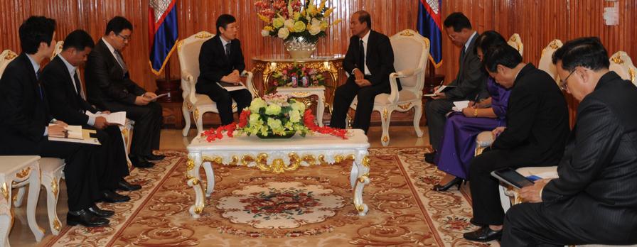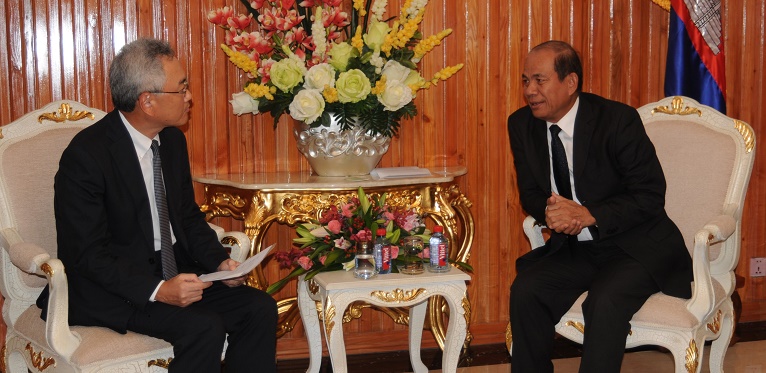 ឯកឧត្តមបណ្ឌិត អ៊ុក រ៉ាប៊ុន រដ្ឋមន្ត្រីក្រសួងកសិកម្ម រុក្ខាប្រមាញ់ និងនេសាទ បានសម្តែងនូវកិច្ចស្វាគមន៍យ៉ាងកក់ក្តៅ ចំពោះលោកIZAKI Hiroshiប្រធាន JICA នៅកម្ពុជានិងសហការីនៅក្នុងជំនួបសវនាការ...