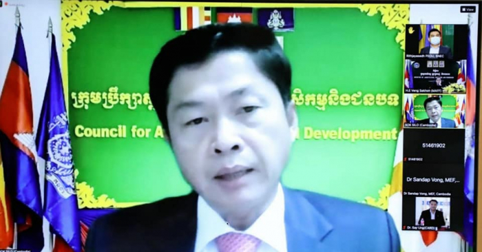 ឯកឧត្តមរដ្ឋមន្រ្តី វេង សាខុន ជាអនុប្រធានក្រុមប្រឹក្សាស្ថារ អភិវឌ្ឍន៍វិស័យកសិកម្ម និងជនបទ ទទួលបន្ទុកសន្តិសុខស្បៀង និងអាហារូបត្ថម្ភ បានដឹកនាំកិច្ចប្រជុំតាមប្រព័ន្ធ Video Conference