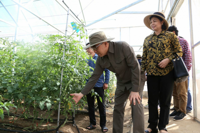 សូមជម្រាបជូនថា កាលពីថ្ងៃទី២៦ ខែធ្នូ កន្លងមក ឯកឧត្តមរដ្ឋមន្ត្រីបានអញ្ជើញទៅពិនិត្យកសិដ្ឋានរបស់ក្រុមហ៊ុន យ៉ាម៉ាតុហ្រ្គីន ស្ថិតនៅក្នុងក្រុងសែនមនោរម្យ ខេត្តមណ្ឌលគិរី។ នៅទីនោះក្រុមហ៊ុនសាងសង់ផ្ទះសំណាញ់បានចំនួន ២០ខ្នង និងរោងបណ្តុះកូនបន្លែចំនួន ២ ទុកត្រៀមដាំបន្លែមានដូចជាស្ពៃក្តោប ស្ពៃបូកគោ ការ៉ុត ដំឡូងបារាំង និងខ្ទឹមបារាំង ហើយក៏មានរៀបចំទីផ្សារលក់ផលិតផល និងដាក់តាំងបង្ហាញផងដែរ។