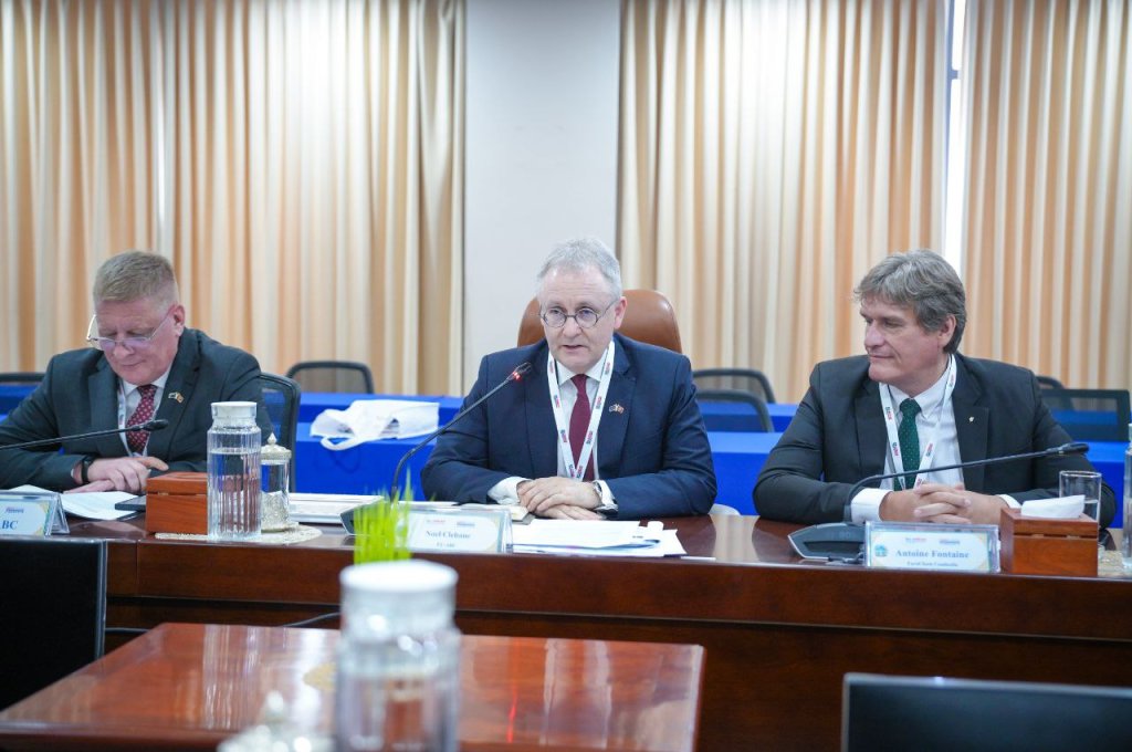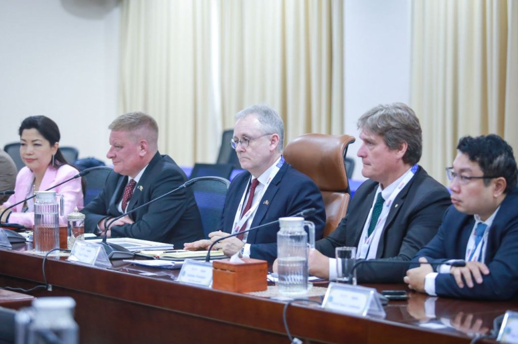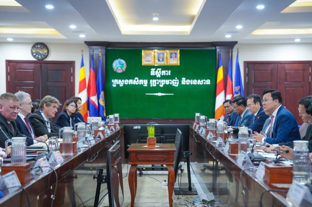 នៅរសៀលថ្ងៃទី០៤ ខែមីនា ឆ្នាំ២០២៦ ឯកឧត្តម ឌិត ទីណា រដ្ឋមន្ត្រីក្រសួងកសិកម្ម រុក្ខាប្រមាញ់ និងនេសាទ និងថ្នាក់ដឹកនាំ បានទទួលជួបជាមួយគណៈប្រតិភូក្រុមប្រឹក្សាធុរកិច្ចសហភាពអឺរ៉ុប-អាស៊ាន(EU-ASEAN Business Council) ដឹកនាំដោយលោក Noel Clehane អនុប្រធាន EU-ABC ក្នុងជំនួបសម្ដែងការគួរសមនិងពិភាក្សាការងារ នៅទីស្តីការក្រសួងកសិកម្ម រុក្ខាប្រមាញ់ និងនេសាទ។