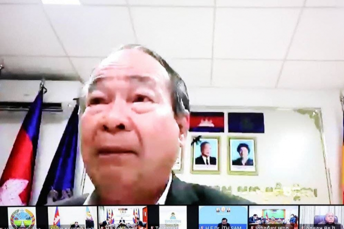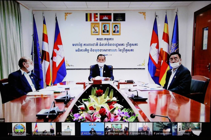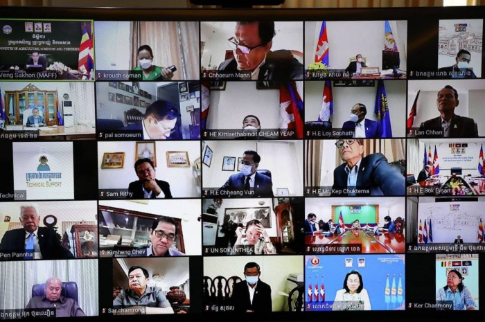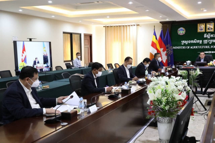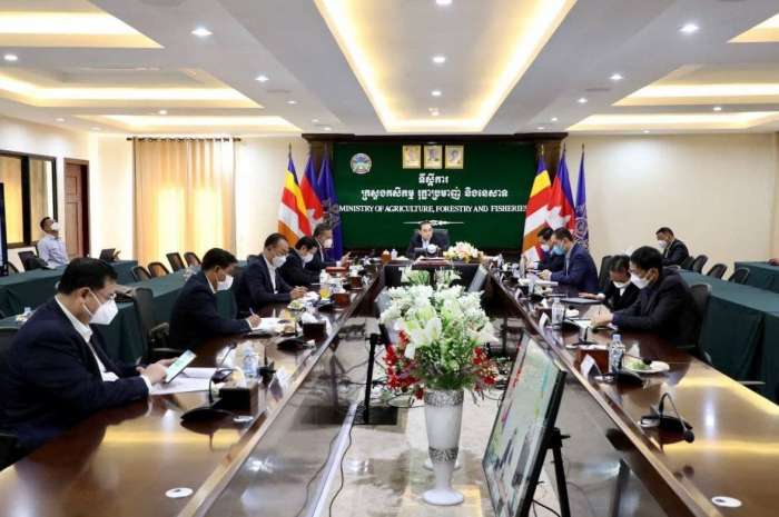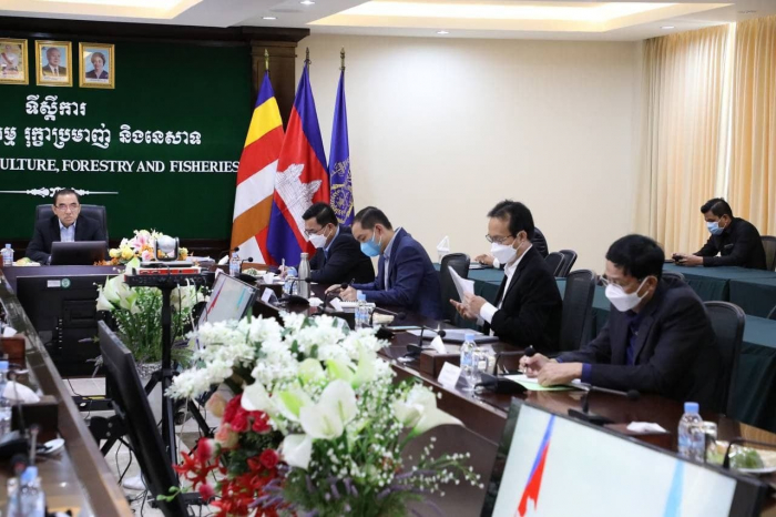 ឯកឧត្តមរដ្ឋមន្រ្តី វេង សាខុន បានដឹកនាំប្រតិភូក្រសួងកសិកម្ម រុក្ខាប្រមាញ់ និងនេសាទ អញ្ជើញចូលរួមប្រជុំតាមប្រព័ន្ធវីដេអូ Zoom ដើម្បីការពារសេចក្តីព្រាងច្បាប់ស្តីពី " ការអនុម័តយល់ព្រមលើពិធីសារធ្វើវិសោធនកម្មកិច្ចព្រមព្រៀងអាស៊ានបូកបីស្តីពីការត្រៀមបម្រុងអង្ករសង្គ្រោះបន្ទាន់"
