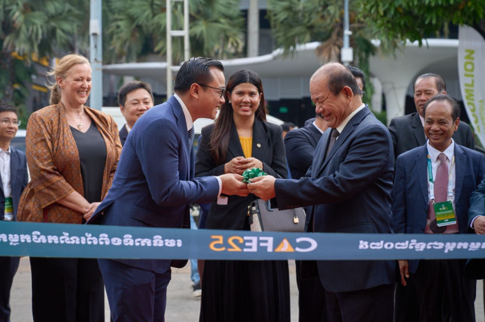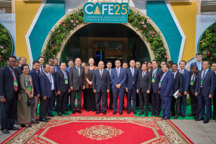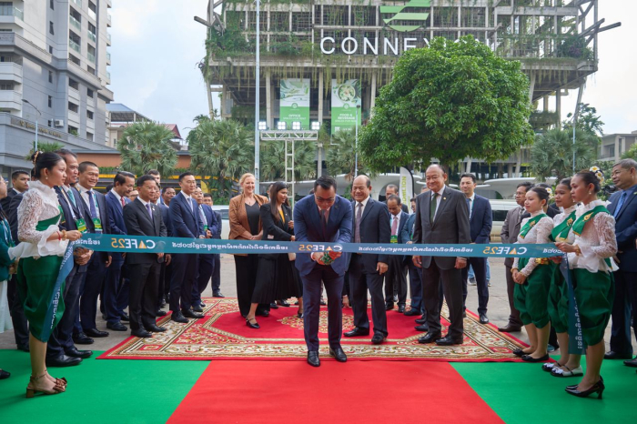 ទិដ្ឋភាពពិធីកាត់ខ្សែបូសម្ពោធ វេទិកា និងពិព័រណ៍កសិកម្មកម្ពុជា (CAFE25) ក្រោមអធិបតីភាព ឯកឧត្តមបណ្ឌិតសភាចារ្យ អ៊ុក រ៉ាប៊ុន ទេសរដ្ឋមន្ត្រី ប្រធានក្រុមប្រឹក្សាស្ដារអភិវឌ្ឍន៍វិស័យកសិកម្ម និងជនបទ និងជាតំណាងដ៏ខ្ពង់ខ្ពស់សម្តេចមហាបវរធិបតី ហ៊ុន ម៉ាណែត នាយករដ្ឋមន្ត្រីនៃព្រះរាជាណាចក្រកម្ពុជា៕