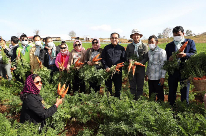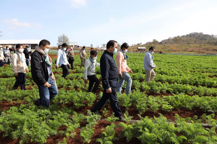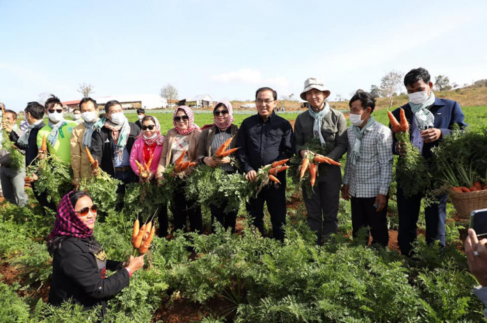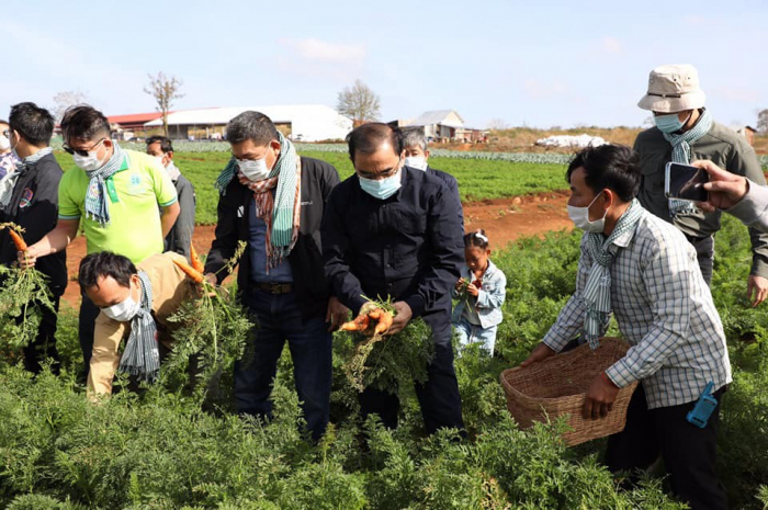ឯកឧត្តមបណ្ឌិតរដ្ឋលេខាធិការ ហ៊ាន វណ្ណហន អញ្ជើញដឹកនាំ​ក្រុមការងារ បន្តចុះពិនិត្យស្ថានភាពផលិតកម្មដំណាំស្ពៃក្ដោប និងការ៉ុត នៅក្រុងសែនមនោរម្យ ខេត្តមណ្ឌលគិរី