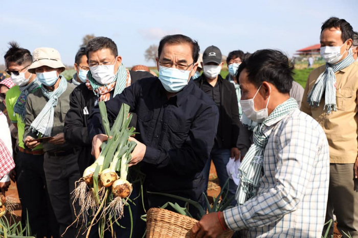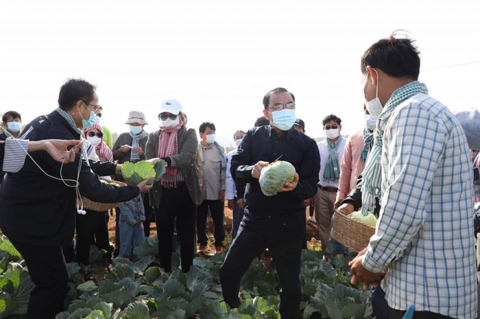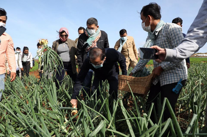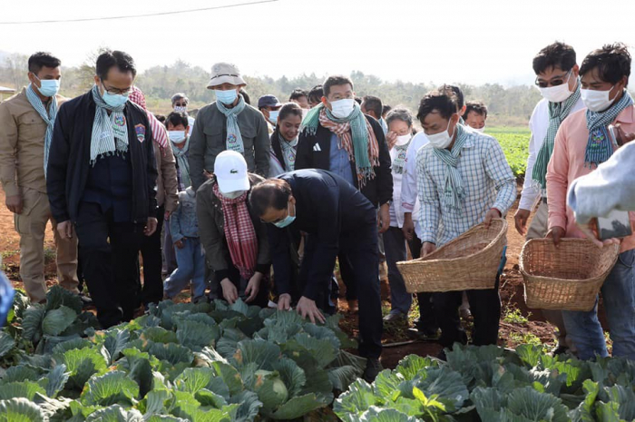 ឯកឧត្តមរដ្ឋមន្ត្រី វេង សាខុន និងសហការីបានអញ្ជើញមកពិនិត្យចម្ការបន្លែ និងចូលរួមសកម្មភាពចុះប្រមូលផលបន្លែសុវត្ថិភាពរបស់លោក គ្រី ម៉េងឈាង នៅក្រុងសែនមនោរម្យ