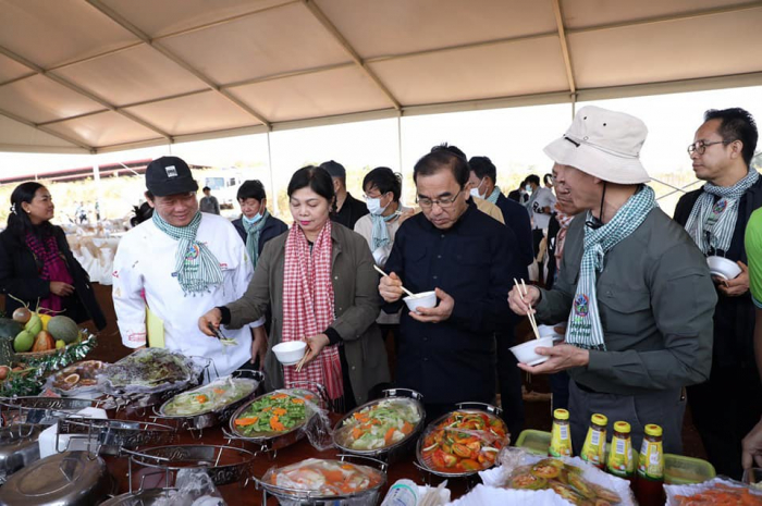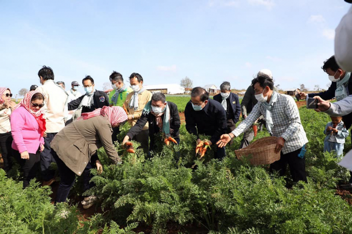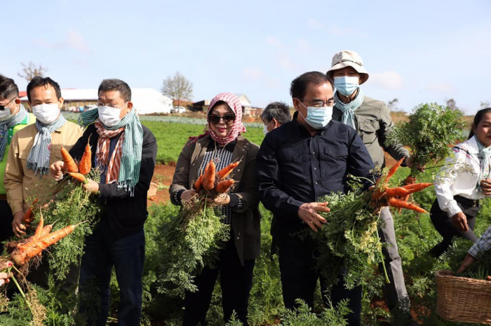 ជាកិច្ចចាប់ផ្តើម ឯកឧត្តម ជាក់ ម៉េងហ៊ាង អភិបាលរងខេត្ត បានមានមតិទាក់ទងស្ថានភាពភូមិសាស្រ្ត សក្តានុពលវិស័យទេសចរណ៍ បន្លែ និងដំណាំមួយចំនួនទៀតដែលកំពុងមានសក្តានុពល សម្រាប់តម្រូវការទីផ្សារ ហើយជាក់ស្តែងកម្មវិធីនាពេលនេះកំពុងជំរុញ ពង្រឹង និងពង្រីកវិស័យសាកវប្បកម្ម និងទាក់ទាញទេសចរណ៍ ចូលរួមបង្កើនផលិតកម្មក្នុងស្រុក កាត់បន្ថយការនាំចូល កែប្រែកម្រិតជីវភាព បង្កើនប្រាក់ចំណូល និងបង្កើតការងារជូនពលរដ្ឋទូទាំងខេត្ត។ លោក សុង ឃាង ប្រធានមន្ទីរកសិកម្ម រុក្ខាប្រមាញ់ និងនេសាទខេត្ត បានអានរបាយការណ៍ជូនជ្រាបអំពីលទ្ធផលការងារបង្កបង្កើនផលជារួម និងដោយឡែក វិស័យសាកវប្បកម្មដែលកំពុងមានការទាក់ ទាញប្រកបដោយសក្តានុពលផ្នែកសេដ្ឋកិច្ច សម្រាប់ទីផ្សារក្នុង និងក្រៅតំបន់ ជាពិសេសទីផ្សាររាជធានីភ្នំពេញមានស្ពៃក្តោប ស្ពៃបូកគោ ដំឡូងបារាំង ខ្ទឹមបារាំង និងការ៉ុត។ ជាបន្តបន្ទាប់ លោកឧកញ៉ា ហ៊ុន ឡាក់ លោក ភិន ភន តំណាងបណ្តុំកសិករផលិតបន្លែសុវត្ថិភាព និងលោក សុង តេង តំណាងសមាគមចុងភៅកម្ពុជាដែលជាអ្នកប្រើប្រាស់ បានឡើងមានចំណាប់អារម្មណ៍ទាក់ ទងកម្មវិធីនាព្រឹកនេះផងដែរ ដែលមានខ្លឹមសាររួមថានឹងខិតខំជំរុញផលិតកម្មបន្លែសុវត្ថិភាពធា នាគុណភាព និងសុវត្ថិភាព ដាំដុះតាមបច្ចេកទេស អនុវត្តតាមគោលការណ៍កសិកម្មល្អ (GAP) បង្កើនបរិមាណផ្គត់ផ្គង់ សមស្របតាមកិច្ចសន្យាជាមួយក្រុមហ៊ុនប្រមូលទិញ។ ពង្រឹងកិច្ចសហ ការរវាងភាគីផលិត ក្រុមហ៊ុនប្រមូលទិញ និងអ្នកប្រើប្រាស់ចុងក្រោយ ធ្វើយ៉ាងណាឲ្យខ្សែច្រវាក់ផលិតកម្មបន្លែសុវត្ថិភាពប្រព្រឹត្តទៅដោយចីរភាព និងនិរន្តរភាព រក្សាបាននូវភាពឈ្នះ-ឈ្នះ។