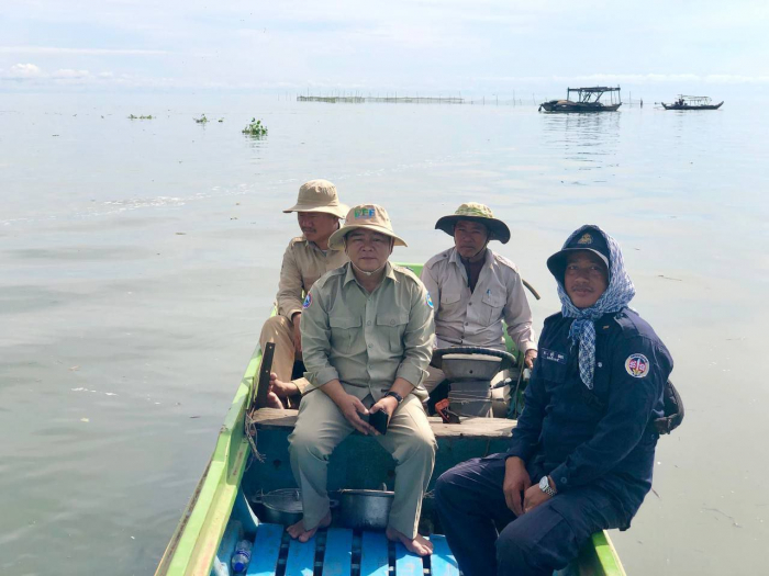 ឯកឧត្ដមអនុរដ្ឋលេខាធិការ ទឹម បូរក្ស ដឹកនាំក្រុមការងារចុះស្រាវជ្រាវ ត្រួតពិនិត្យ ទប់ស្កាត់និងបង្ក្រាបបទល្មើសជលផល នៅចំណុចព្រែកផ្លូវក្របី ភូមិព្រៃកន្លោង ខេត្តព្រៃវែង