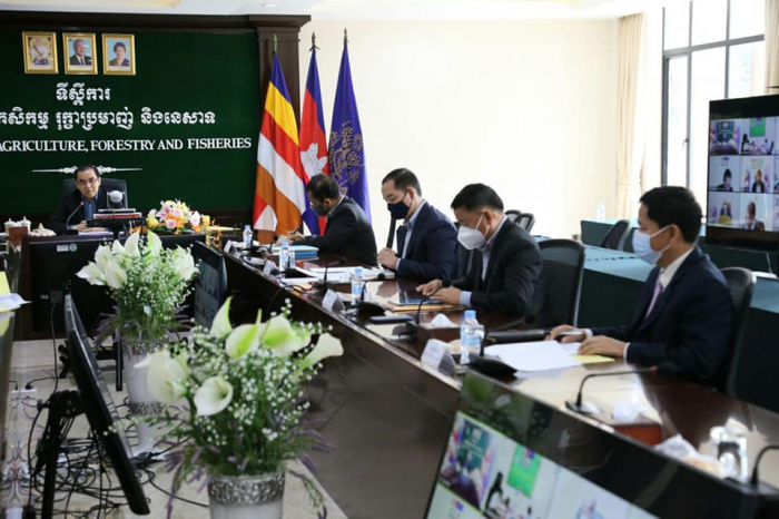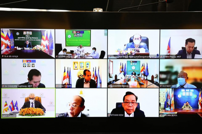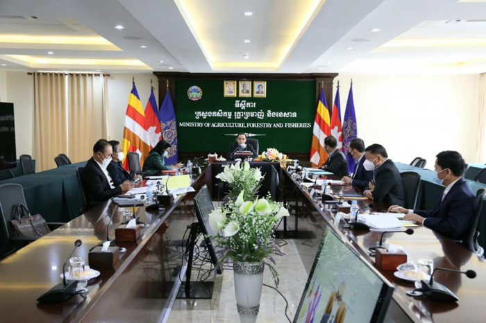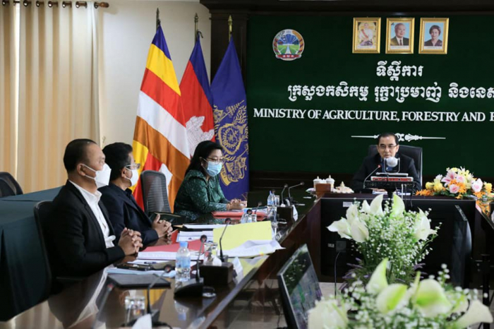 ឯកឧត្តមរដ្ឋមន្រ្តី វេង សាខុន និងសហការីបានអញ្ជើញចូលរួមប្រជុំចង្អៀតតាមប្រព័ន្ធ Zoom ជាមួយក្រសួងសេដ្ឋកិច្ច និងហិរញ្ញវត្ថុ អំពីបញ្ហាសត្តឃាតដ្ឋាន
