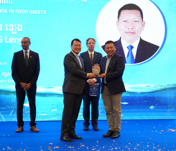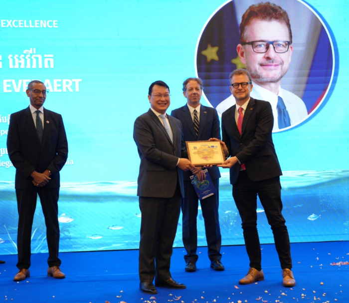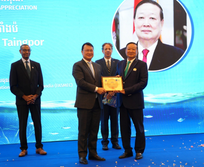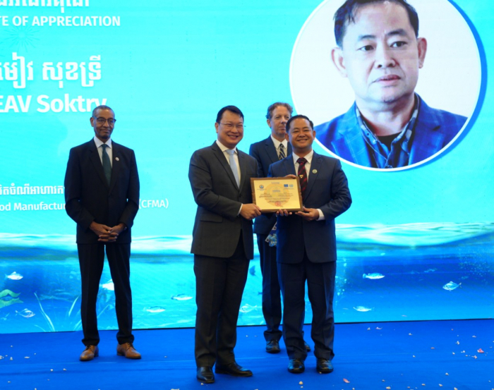 ស្ថិតក្រោមមូលបទ «បរិវត្តកម្មជលផលកម្ពុជាដេីម្បីកំណេីនប្រកបដោយចីរភាព និងបរិយាប័ន្ន» ឯកឧត្តមរដ្ឋមន្រ្តី បានអបអរសាទរនូវការអនុវត្តការងារគម្រោងពីមន្រ្តីជំនាញ និងដៃគូអភិវឌ្ឍន៍សហភាពអឺរ៉ុប ព្រមទាំងអង្គការយូនីដូ ដែលបានជំរុញតួអង្គពាក់ព័ន្ធទាំងអស់ក្នុងវិស័យជលផលកម្ពុជា ទទួលបាននូវចំណេះដឹង ចំណេះធ្វេីក្នុងការកែច្នៃផលិតផលជលផលរួមមាន៖ ត្រីងៀត ប្រហុក ផ្អកជាដេីម ប្រកបដោយគុណភាព សុវត្ថិភាព អនាម័យខ្ពស់ និងអាចនាំចេញទៅកាន់ទីផ្សារអន្តរជាតិ។