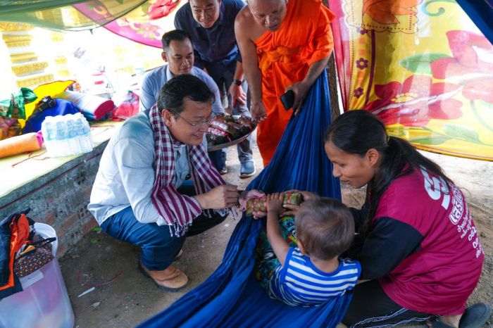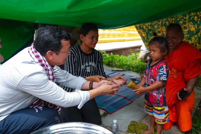 នាព្រឹកថ្ងៃពុធ ទី៣០ ខែកក្កដា ឆ្នាំ២០២៥ ឯកឧត្តម ឌិត ទីណា រដ្ឋមន្ត្រីក្រសួងកសិកម្ម រុក្ខាប្រមាញ់ និងនេសាទ និងជាប្រធានក្រុមការងាររាជរដ្ឋាភិបាលចុះមូលដ្ឋានខេត្តបន្ទាយមានជ័យ អញ្ជើញចូលរួមការវេចនំអន្សមជាមួយប្រជាពលរដ្ឋនៅស្រុកថ្មពួក សម្រាប់ផ្គត់ផ្គង់នំអន្សមចំនួន ៥០០០ ដើមជូនពុកម៉ែបងប្អូនភៀសខ្លួនមកទីតាំងសុវត្ថិភាព និងកងកម្លាំងការពារតំបន់ព្រំដែននៃខេត្តបន្ទាយមានជ័យ។