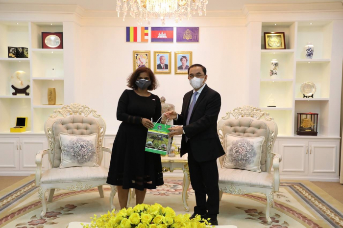 ក្នុងនាមរាជរដ្ឋាភិបាលកម្ពុជា ក្រសួង និងខ្លួនលោកផ្ទាល់ ឯកឧត្តមរដ្ឋមន្ត្រីតាមរយ:លោកស្រី បានថ្លែងអំណរគុណជូនចំពោះរដ្ឋាភិបាល និងប្រជាជនសហរដ្ឋអាមេរិក តាមរយ:ទីភ្នាក់ងារ USAID ដែលបានជួយអភិវឌ្ឍកម្ពុជារហូតមកទល់បច្ចុប្បន្ន ក្នុងនោះក៏មានវិស័យកសិកម្មផងដែរ។ ឯកឧត្តមរដ្ឋមន្ត្រីបានជម្រាបជូនលោកស្រីថារាល់គម្រោង ឬកម្មវិធីជំនួយឧបត្ថម្ភរបស់ទីភ្នាក់ងារ USAID បាននឹងកំពុងចូលរួមចំណែកយ៉ាងសំខាន់ក្នុងការអភិវឌ្ឍវិស័យកសិកម្មកម្ពុជាឲ្យមានការរីកចម្រើន ធានាបាននូវសន្តិសុខស្បៀង បង្កើនប្រាក់ចំណូល កែប្រែកម្រិតជីវភាព និងបង្កើនបរិមាណផលិតប្រកបដោយនិរន្តរភាព តាមរយ:ការអនុវត្តបច្ចេកវិទ្យាសមស្រប ទំនើបទាន់ សម័យ ធននឹងការប្រែប្រួលអាកាសធាតុ បរិយាប័ន្ន និងនវានុវត្តន៍ សំដៅឈានទៅសម្រេចឲ្យបាននូវចក្ខុវិស័យរបស់រាជរដ្ឋាភិបាល នាឆ្នាំ២០៣០ និង ២០៥០ និងជាពិសេសឈានជាជំហានៗ ឆ្ពោះទៅជាប្រទេសនាំចេញកសិផលទៅកាន់ទីផ្សារអន្តរជាតិ។