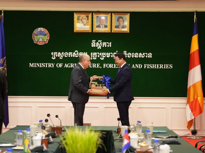 ជាការឆ្លើយតប ឯកឧត្តមរដ្ឋមន្ត្រីបានសម្តែងនូវការស្វាគមន៍ចំពោះការវិវត្តថ្មីនៃកិច្ចសហប្រតិបត្តិការរវាងកម្ពុជា និងប្រេសុីល និងបានឱ្យក្រុមការងារត្រៀមសម្របសម្រួល ដើម្បីទទួលទស្សនកិច្ចពីសំណាក់រដ្ឋមន្ត្រីកសិកម្មប្រេសុីលនៅក្នុងពេលវេលាសមស្របណាមួយ។ ជាមួយគ្នាដែរ ឯកឧត្តមរដ្ឋមន្ត្រី បានគូសបញ្ជាក់អំពីសក្តានុពលនៃវិស័យកសិកម្មកម្ពុជា ដូចជាស្រូវដែលមានអតិរេកប្រមាណ ៦លានតោនក្នុងមួយឆ្នាំ សម្រាប់ការកែច្នៃនាំចេញ ព្រមទាំងដំណាំសក្តានុពលផ្សេងទៀត ជាអាទិ៍៖ ស្វាយចន្ទី ដំឡូងមី និងកៅស៊ូ។ លើសពីនេះទៀត កម្ពុជាជាសមាជិកអាស៊ានដែលមានទីផ្សារធំទូលាយ ព្រមទាំងមានកិច្ចព្រមព្រៀងពាណិជ្ជកម្មជាមួយទីផ្សារប្រទេសចិន ដែលនេះជាឱកាសសម្រាប់ការវិនិយោគលើការកែច្នៃនាំចេញ (Downstream)។ ទន្ទឹមនឹងនេះដែរ កម្ពុជាក៏មានច្បាប់វិនិយោគដ៏គួរឱ្យទាក់ទាញ សម្រាប់ការវិនិយោគពីខាងក្រៅប្រទេសផងដែរ។