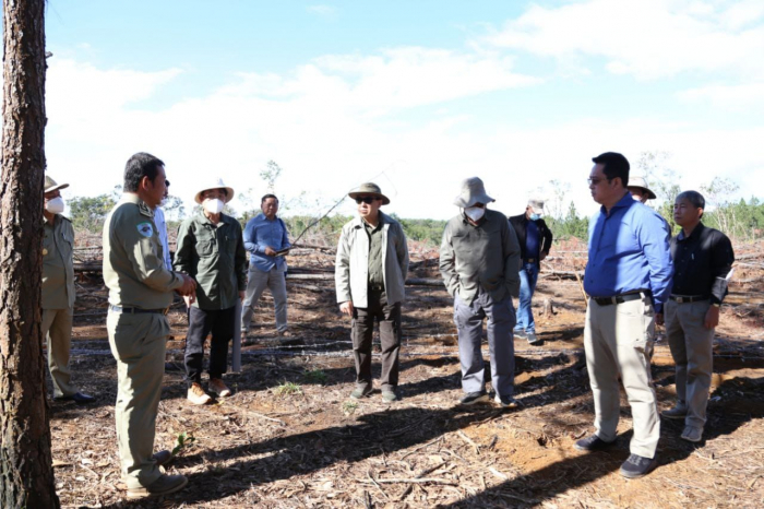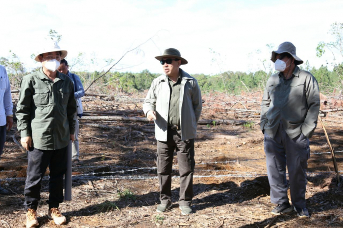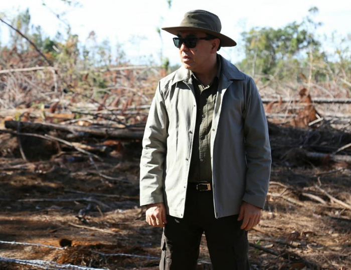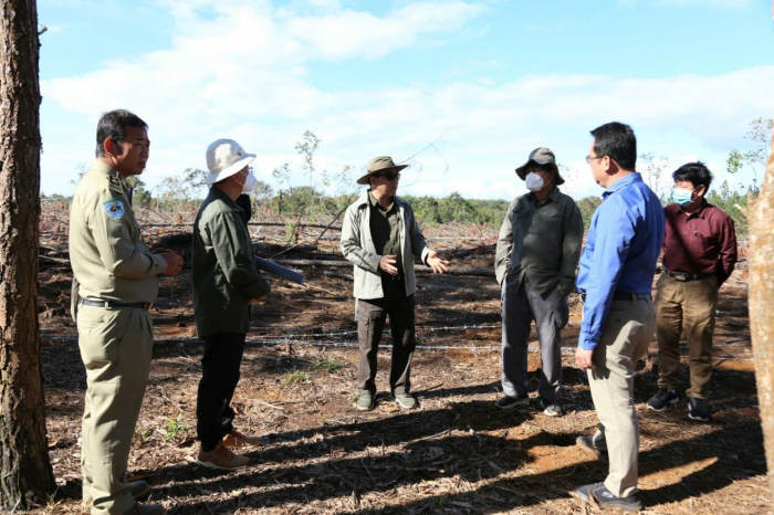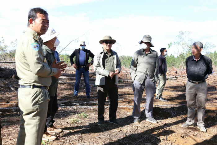 ឯកឧត្តមរដ្ឋមន្ត្រី វេង សាខុន អមដំណើរដោយឯកឧត្តមរដ្ឋលេខាធិការ ឯកឧត្តមប្រតិភូរាជរដ្ឋាភិបាលកម្ពុជាទទួលបន្ទុកជាប្រធានរដ្ឋបាលព្រៃឈើ លោកប្រធានមន្ទីរកសិកម្ម រុក្ខាប្រមាញ់និងនេសាទខេត្តមណ្ឌលគីរី និងសហការីបានអញ្ជើញចុះមកពិនិត្យទិដ្ឋភាពជាក់ស្តែងនៃការកាប់ ឈូសឆាយ និងដុតបំផ្លាញ ដើម្បីទន្ទ្រានយកដីកាន់កាប់ជាកម្មសិទ្ធិផ្ទាល់ខ្លួន