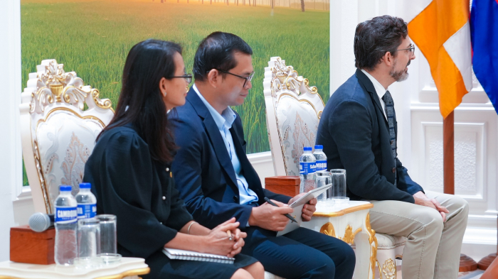 នៅព្រឹកថ្ងៃទី០៧ ខែកុម្ភៈ ឆ្នាំ២០២៥ ឯកឧត្តម អុឹម ស៊ីថុល រដ្ឋលេខាធិការប្រចាំការក្រសួងកសិកម្ម រុក្ខាប្រមាញ់ និងនេសាទ តំណាងដ៏ខ្ពង់ខ្ពស់ឯកឧត្តម ឌិត ទីណា រដ្ឋមន្ត្រីក្រសួងកសិកម្ម រុក្ខាប្រមាញ់ និងនេសាទ បានទទួលជួបសម្តែងការគួរសមជាមួយក្រុមការងារនៃអង្គការស្បៀង និងកសិកម្មនៃសហប្រជាជាតិប្រចាំកម្ពុជា នៅទីស្តីការក្រសួងកសិកម្ម រុក្ខាប្រមាញ់ និងនេសាទ។