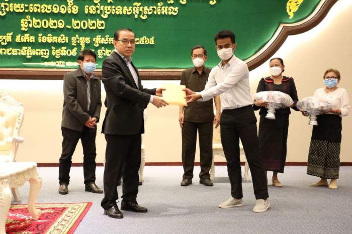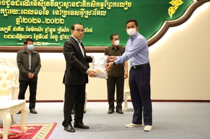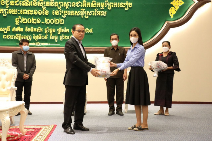 នៅទីស្តីការក្រសួងកសិកម្ម រុក្ខាប្រមាញ់ និងនេសាទ នៅវេលាម៉ោង ១៥:០០ ថ្ងៃព្រហស្បតិ៍ ៥កើត ខែមិគសិរ ឆ្នាំឆ្លូវ ត្រីស័ក ព.ស. ២៥៦៥ ត្រូវនឹងថ្ងៃទី៩ ខែធ្នូ ឆ្នាំ២០២១ ឯកឧត្តមរដ្ឋមន្រ្តី វេង សាខុន បានអញ្ជើញជួបសំណេះសំណាលជាមួយនិស្សិតចំនួន ២០០នាក់ មកពីវិទ្យាស្ថានជាតិកសិកម្មព្រែកលៀប ដែលនឹងត្រូវចេញដំណើរទៅធ្វើកម្មសិក្សារយ:ពេល ១១ខែ សម្រាប់ឆ្នាំសិក្សា២០២១-២០២២ ជំនាន់ទី០២ នៅប្រទេសអ៊ីស្រាអែល។ ឯកឧត្តមរដ្ឋលេខាធិការ អនុរដ្ឋលេខាធិការ ឯកឧត្តមនាយកវិទ្យាស្ថានជាតិកសិកម្មព្រែកលៀប និងសាស្រ្តាចារ្យ លោកគ្រូ អ្នកគ្រូ មន្រ្តីពាក់ព័ន្ធក៏បានអញ្ជើញចូលរួមអបអរសាទរផងដែរ។
