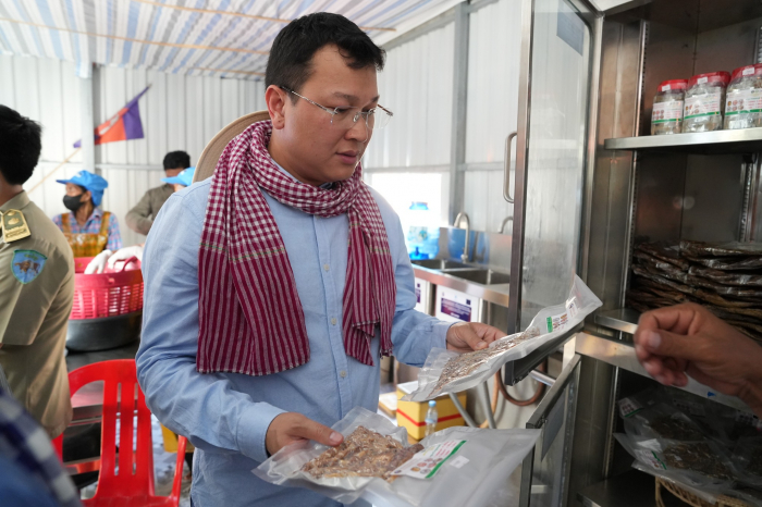 នាឱកាសនោះ ឯកឧត្តមរដ្ឋមន្រ្តី បានពិនិត្យមើលពីច្រវាក់បច្ចេកទេសកែច្នៃត្រីស្រស់ដែលប្រមូលទិញពីប្រជាសហគមន៍នេសាទក្នុងតំបន់ និងតាមឡូចិញ្ចឹមបែបលក្ខណៈគ្រួសារ តាមដំណាក់កាលនីមួយៗ រហូតដល់ការវិចខ្ចប់ជាផលិតផលសម្រេចសម្រាប់ចែកចាយលើទីផ្សារ។ ឯកឧត្តមរដ្ឋមន្រ្តី បានកោតសរសើរអំពីឱជារសរបស់ត្រី សោភណ្ឌភាពនៃការវេចខ្ចប់ និងការរក្សាទុកផលិតផលសម្រេច បន្ទាប់ពីបានភ្លក្ស និងពិនិត្យមើលដោយផ្ទាល់។