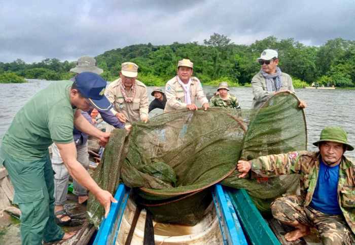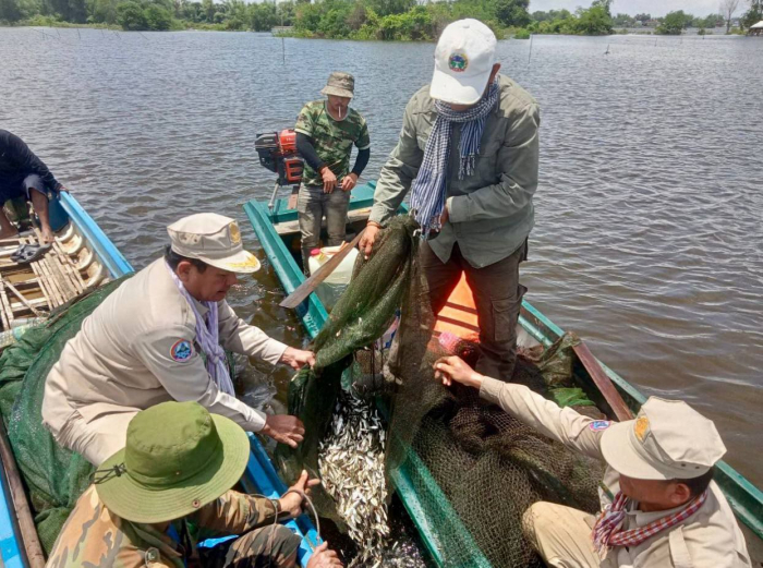 នៅថ្ងៃទី៨ ខែកញ្ញា ឆ្នាំ២០២៥ ឯកឧត្តម ទឹម បូរក្ស អនុរដ្ឋលេខាធិការក្រសួងកសិកម្ម រុក្ខាប្រមាញ់ និងនេសាទ តាមការណែនាំពីឯកឧត្តមរដ្ឋលេខាធិការ ហាស់ សារ៉េត បានអញ្ជើញដឹកនាំកម្លាំងអធិការដ្ឋានរដ្ឋបាលជលផលមេគង្គ ខណ្ឌរដ្ឋបាលជលផលក្រចេះ ផ្នែករដ្ឋបាលជលផលព្រែកប្រសព្វ ក្រុមប្រឹក្សាឃុំ ប៉ុស្តិ៍នគរបាលរដ្ឋបាល សហគមន៍នេសាទ និងប្រជាការពារប្ញស្សីកែវ សរុបចំនួន១៤នាក់ ដោយប្រើទូកម៉ាស៊ីនចំនួន៤គ្រឿង ចុះត្រួតពិនិត្យ និងបង្ក្រាបបទល្មើសនេសាទនៅក្នុងភូមិសាស្ត្រ ឃុំប្ញស្សីកែវ ស្រុកព្រែកប្រសព្វ ខេត្តក្រចេះ។