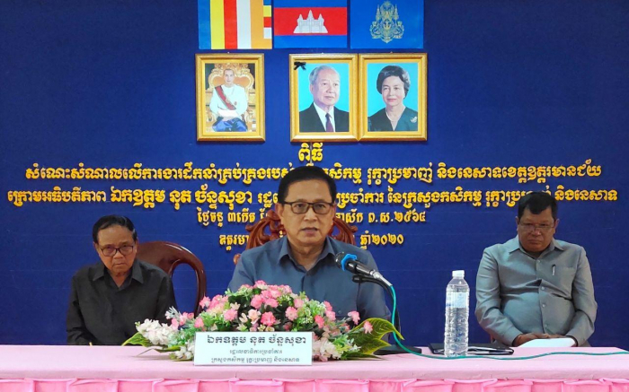 ពិធីជួបសំណេះសំណាលជាមួយថ្នាក់ដឹកនាំមន្ទីរ ថ្នាក់ដឹកនាំការិយាល័យជំនាញ ថ្នាក់ដឹកនាំខណ្ឌរដ្ឋបាលព្រៃឈើ និងថ្នាក់ដឹកនាំខណ្ឌរដ្ឋបាលជលផល និងពិភាក្សាការងារជាមួយឯកឧត្តមអភិបាល នៃគណៈអភិបាលខេត្តឧត្តរមានជ័យ ពាក់ព័ន្ធនឹងការងារដឹកនាំ និងគ្រប់គ្រងរបស់មន្ទីរកសិកម្ម រុក្ខាប្រមាញ់ និងនេសាទខេត្តឧត្តរមានជ័យ ក្រោមអធិបតីភាព ឯកឧត្តម នុត ច័ន្ទសុខា រដ្ឋលេខាធិការប្រចាំការ ដែលមានការអញ្ជើញចូលរួមផងដែរ​ពី​ ឯកឧត្តម​ ណី​ លន់​ រដ្ឋលេខាធិការក្រសួងកសិកម្ម​ រុក្ខាប្រមាញ់​ និងនេសាទ អមដំណើរដោយឯកឧត្តម គង់ វ៉ាញ អគ្គាធិការ នៃអគ្គាធិការដ្ឋាន និងលោក ទី ចាន់ណា ប្រធាននាយកដ្ឋានបុគ្គលិក និងអភិវឌ្ឍន៍ធនធានមនុស្ស និងលោកប្រធានការិយាល័យទទួលពាក្យបណ្តឹង នៃអគ្គាធិការដ្ឋានក្រសួងកសិកម្ម រុក្ខាប្រមាញ់ និងនេសាទ នៅថ្ងៃចន្ទ ៣កើត ខែកត្តិត ឆ្នាំជូត ទោស័ក ព.ស.២៥៦៤ ត្រូវនឹងថ្ងៃទី១៩ ខែតុលា ឆ្នាំ២០២០។
