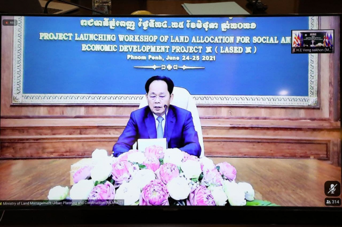 នៅព្រឹកថ្ងៃព្រហស្បតិ៍ ១៥កើត ខែបឋមាសាឍ ឆ្នាំឆ្លូវ ត្រីស័ក ព.ស.២៥៦៥ ត្រូវនឹងថ្ងៃទី២៤ ខែមិថុនា ឆ្នាំ២០២១ ឯកឧត្តម វេង សាខុន រដ្ឋមន្ត្រីក្រសួងកសិកម្ម រុក្ខាប្រមាញ់ និងនេសាទ បានចូលរួមក្នុងពិធីបើកសិក្ខាសាលាផ្សព្វផ្សាយស្តីពីការចាប់ផ្តើមអនុវត្តគម្រោងបែងចែកដីដើម្បីសង្គមកិច្ច និងការអភិវឌ្ឍសេដ្ឋកិច្ចដំណាក់ទី៣ (LASED III) ក្រោមអធិបតីភាព ឯកឧត្តម ជា សុផារ៉ា ឧបនាយករដ្ឋមន្រ្តី និងជារដ្ឋមន្រ្តីក្រសួងរៀបចំដែនដី នគរូបនីយកម្ម និងសំណង់ តាមរយៈប្រព័ន្ធ Video Conference Zoom Meeting ដែលមានការអញ្ជើញចូលរួមរបស់ លោកស្រី Mariam J. Sherman នាយិកាធនាគារពិភពលោកប្រចាំប្រទេសកម្ពុជា ឡាវ និងមីយ៉ាន់ម៉ា ឯកឧត្តម លោកជំទាវ ក្រសួងស្ថាប័នពាក់ព័ន្ធ រដ្ឋបាលខេត្តទាំង២៤ មន្ទីរកសិកម្ម រុក្ខាប្រមាញ់ និងនេសាទ ទាំង២៤ខេត្ត មន្ទីររៀបចំដែនដី នគរូបនីយកម្ម សំណង់ និងសុរិយោដី ទាំង២៤ខេត្ត មន្ទីរពាក់ព័ន្ធ អង្គការដៃគូនានា និងអង្គភាពជំនាញតាមខេត្តគោលដៅ ព្រមទាំងប្រជាពលរដ្ឋតាមខេត្តគោលដៅ សរុបប្រមាណជា ៥៥០នាក់។