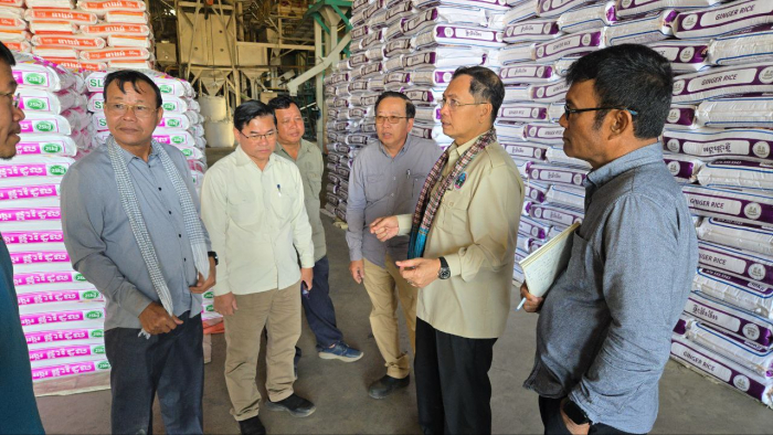នាឱកាសនេះ​ ឯកឧត្តមរដ្ឋលេខាធិការ បានជួបសំណេះសំណាលជាមួយប្រជាកសិករ និងម្ចាស់រោងម៉ាស៊ីនកិនស្រូវមួយចំនួនដូចជា ទី១ រោងម៉ាស៊ីន១៦៨៨ មានលទ្ធភាពទទួលទិញស្រូវអូអឹម​ ៥៤៥១ ថ្លៃ៨០០-៨២០រៀល/គីឡូក្រាម អាចសម្ងួតបា​ន​ ៥០០តោន/ថ្ងៃ និងមានឃ្លាំងស្តុកទុកបានចំនួន​ ១២ ០០០តោន។ ទី២​ រោងម៉ាស៊ីនកិនស្រូវ ងួន ហុង មានលទ្ធភាពទទួលទិញស្រូវអូអឹម​ ៥៤៥១ ថ្លៃ៨០០រៀល/គីឡូក្រាម អាចសម្ងួតបាន​ ៥០០ តោន/ថ្ងៃ និងមានឃ្លាំងស្តុកទុកបានចំនួន​ ២មុឺនតោន​ ។​ ទី៣​ រោងម៉ាស៊ីនកិនស្រូវ Amru Rice មានលទ្ធភាពទទួលទិញស្រូវអូអឹម​ ៥៤៥១ ថ្លៃ​៨២០រៀល/គីឡូក្រាម អាចសម្ងួតបាន​ ៥០០ តោន/ថ្ងៃ និងមានឃ្លាំងស្តុកទុកបានចំនួន​ ២ម៉ឺនតោន និងទី៤​ រោងម៉ាស៊ីន BRM មានលទ្ធភាពទទួលទិញស្រូវអូអឹម​ ៥៤៥១​ ចំនួន ៨៣០រៀល/គីឡូក្រាម អាចសម្ងួតបាន​ ៥៥០ តោន/ថ្ងៃ និងមានឃ្លាំងស្តុកទុកបានចំនួន២ម៉ឺនតោន។