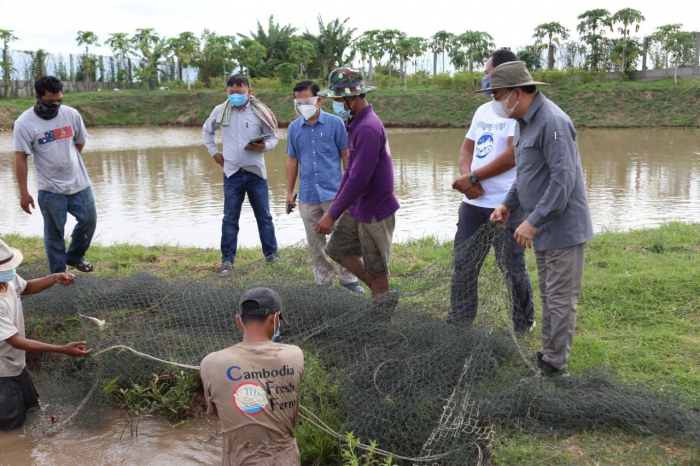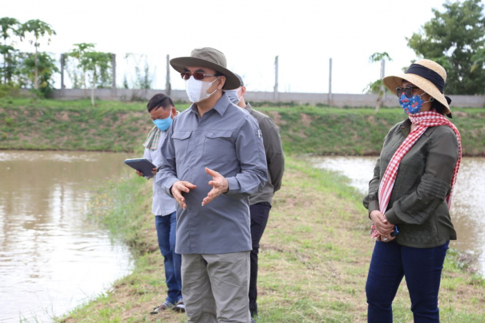 ឯកឧត្តមរដ្ឋមន្រ្តី វេង សាខុន អមដំណើរដោយឯកឧត្តមប្រតិភូរាជរដ្ឋាភិបាលកម្ពុជាទទួលបន្ទុកជាប្រធានរដ្ឋបាលជលផល និងមន្រ្តីជំនាញបានអញ្ជើញមកពិនិត្យកសិដ្ឋានចិញ្ចឹមត្រី Cambodia Fresh Farm