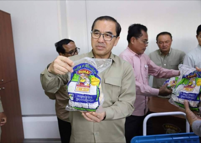 បន្ទាប់ពីបានអញ្ជើញពិនិត្យខ្សែច្រវាក់ផលិតកម្មក្នុងសត្តឃាតដ្ឋាន និងស្តាប់ការអត្ថាធិប្បាយអំពី ការអនុវត្តបច្ចេកទេសពិឃាត បោចរោម យកគ្រឿងក្នុងចេញ លាងសំអាត និងបញ្ចូលក្នុងបន្ទប់ ត្រជាក់។ល។ រួចមក លោករដ្ឋមន្រ្តី បានសម្តែងនូវទឹកចិត្តអបអរសាទរ និងវាយតម្លៃខ្ពស់ចំពោះការ ចូលរួមវិនិយោគសាងសង់សត្តឃាតដ្ឋានមាន់មួយនេះឡើងក្នុងខេត្តកំពត ដែលបំពាក់ដោយឧបការណ៍បច្ចេកទេសទំនើបទាន់សម័យ ធានាបានអនាម័យ គុណភាព និងសុវត្ថិភាពលើផលិត ផលសាច់ឆ្លើយតបបានយ៉ាងពេញលេញតាមតម្រូវការទីផ្សារ និងតម្រូវចិត្តអ្នកបរិភោគ ដែលតែង តែគិត និងបារម្ភអំពីគុណភាពសាច់ខ្វះអនាម័យនាពេលបច្ចុប្បន្ន។ លោកបានបញ្ជាក់បន្ថែមដោយបង្កប់ន័យជឿជាក់លើការដឹកនាំរបស់រាជរដ្ឋាភិបាលដែលមានសម្តេចតេជោជានាយករដ្ឋមន្រ្តី ធ្វើឲ្យប្រទេសជាតិមានសុខសន្តិភាព ស្ថិរភាព និងការអភិវឌ្ឍ ហើយពិតណាស់សមិទ្ធផលដ៏មាន តម្លៃនេះគឺជាកត្តាចំបងក្នុងការលើកទឹកចិត្ត និងចូលរួមយ៉ាងសស្រាក់សស្រាំពីវិស័យឯកជនអភិវឌ្ឍប្រទេសតាមរយ:ការដាក់ទុនវិនិយោគលើគ្រប់វិស័យ និងជាពិសេសវិស័យកសិកម្ម ជាក់ ស្តែងក្រុមហ៊ុន ហ្រ្គេន ហុង យាន អេឃ្វើខលឈ័រ (ខេមបូឌា) ឯ.ក ដាក់ទុនវិនិយោគកសិដ្ឋានចិញ្ចឹមបង្គានៅស្រុកទឹកឈូ និងក្រុមហ៊ុន 3PLE FARM ដាក់ទុនវិនិយោគបង្កើតសត្តឃាតដ្ឋានមាន់ នៅស្រុកជុំគីរី ដែលកសិដ្ឋានទាំងពីរកើតលើទឹកដីខេត្តកំពត។ ជាងនេះទៅទៀត លោកបានបញ្ជាក់ថា ការចូលរួមពីវិស័យឯកជន ពិតជាបានចូលរួមចំណែកបង្កើតការងារជូនប្រជាពលរដ្ឋនៅមូលដ្ឋាន បង្កើនចំណូលក្នុងគ្រួសារ និងកាត់បន្ថយភាពក្រីក្រ ជាពិសេសចូលរួមអភិវឌ្ឍវិស័យផលិតកម្មសាច់មាន់ដែលក្រសួងទាមទារចង់បាន។