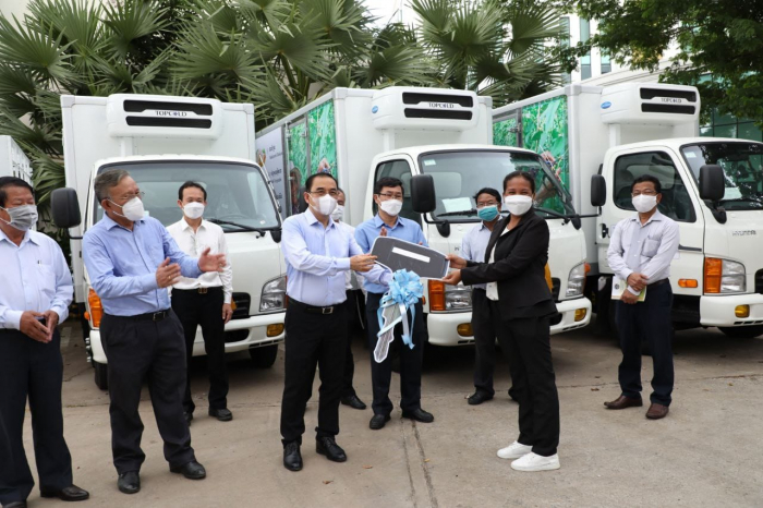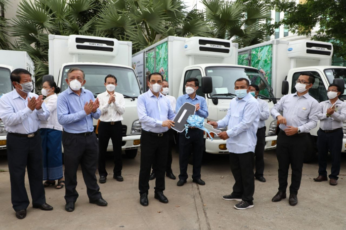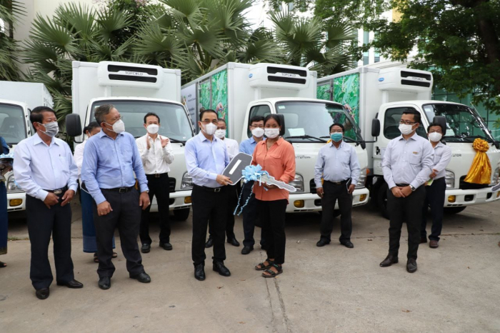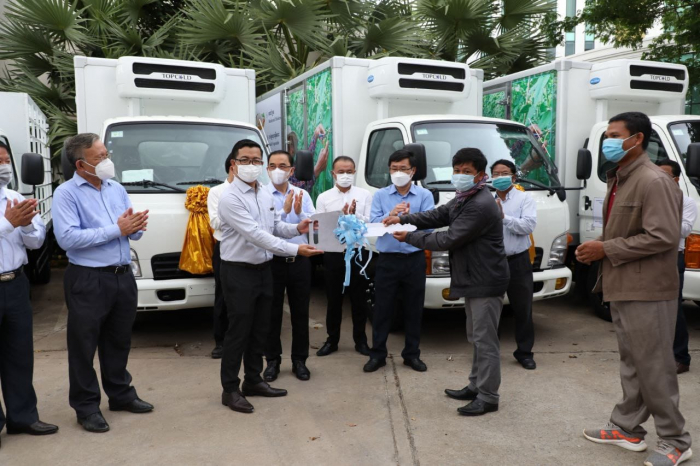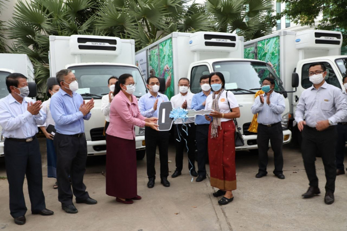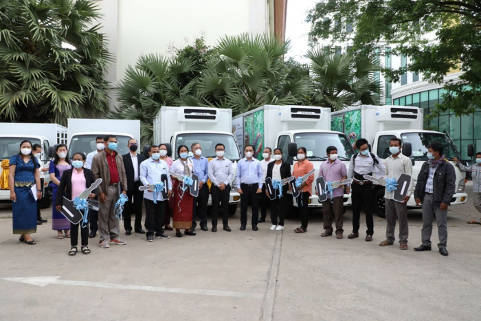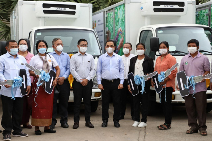 ឯកឧត្តមរដ្ឋមន្រ្តី វេង សាខុន បានអញ្ជើញជាអធិបតីភាពក្នុងពិធីប្រគល់-ទទួលយាន្តយន្តបំពាក់ទូរត្រជាក់ យានយន្តដឹកផលិតផលកសិកម្ម និងមធ្យោបាយដឹកជញ្ជូនរ៉ឺម៉កកង់បី ជូនដល់សហគមន៍កសិកម្ម ក្នុងក្របខ័ណ្ឌគម្រោងស្តីពី "ការលើកកម្ពស់ផលិតផលមាន់ស្រែខ្មែរ សម្រាប់មោទនភាពជាតិខ្មែរ"