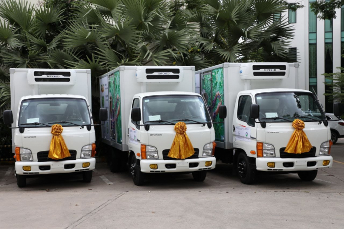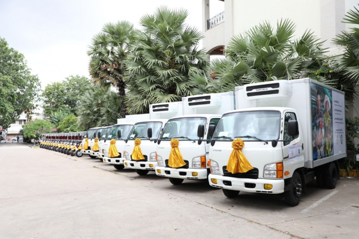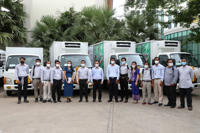 សូមជម្រាបជូនថាសម្រាប់ជំនួយថ្ងៃនេះមាន៖ យានយន្តបំពាក់ទូត្រជាក់ចំនួន ០៣គ្រឿង យានយន្តដឹងកសិផលចំនួន ០៤គ្រឿង និងរ៉ឺម៉កបង់បីចំនួន ១៤គ្រឿង ជូនសហគមន៍កសិកម្មចំនួន ២១សហគមន៍ក្នុងចំណោមសហគមន៍កសិកម្មដែលស្ថិតនៅក្នុងគម្រោងចំនួន ៧៥សហគមន៍ ក្នុងខេត្តគោលដៅចំនួនទាំង ១១ខេត្ត។ ចំពោះព័ត៌មានបន្ថែមទាក់ទងគម្រោងជំនួយ និងសកម្មភាពការងាររបស់គម្រោងសូមអញ្ជើញទាក់ទងលោកនាយកអង្គការ លេខ ០១២/០១៦ ២២១ ៧៧៥។
