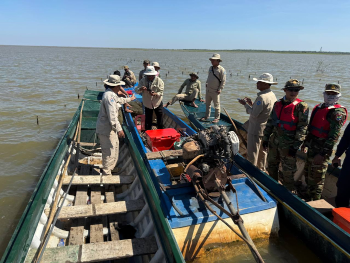 ថ្ងៃទី២៤ ខែមករា ឆ្នាំ២០២៦ ឯកឧត្តម ប៉ែន ផល្លីកា អនុរដ្ឋលេខាធិការក្រសួងកសិកម្ម រុក្ខាប្រមាញ់ និងនេសាទ តំណាងដ៏ខ្ពង់ខ្ពស់ឯកឧត្ដមរដ្ឋមន្រ្តី ឌិត ទីណា បានអញ្ជើញដឹកនាំក្រុមការងារជំនាញចុះប្រតិបត្តិការទប់ស្កាត់ និងបង្រ្កាបបទល្មើសជលផល នៅភូមិសាស្ត្រកដប ព្រំប្រទល់ខេត្តកំពង់ឆ្នាំង ពោធិ៍សាត់ និងខេត្តកំពង់ធំ។