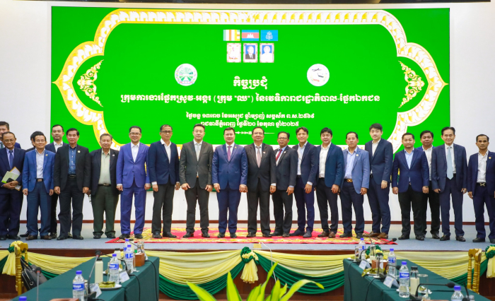 នារសៀលថ្ងៃទី២០ ខែតុលា ឆ្នាំ២០២៥ ឯកឧត្តម ឌិត ទីណា រដ្ឋមន្ត្រីក្រសួងកសិកម្ម រុក្ខាប្រមាញ់ និងនេសាទ និងលោកឧកញ៉ាសហប្រធាន ចាន់ សុឃាំង អញ្ជើញជាគណៈអធិបតីដឹកនាំកិច្ចប្រជុំក្រុមការងារផ្នែកស្រូវ-អង្ករ (ក្រុម ឈ) នៃវេទិការាជរដ្ឋាភិបាល-ផ្នែកឯកជន នៅទីស្តីការក្រសួងកសិកម្ម រុក្ខាប្រមាញ់ និងនេសាទ៕