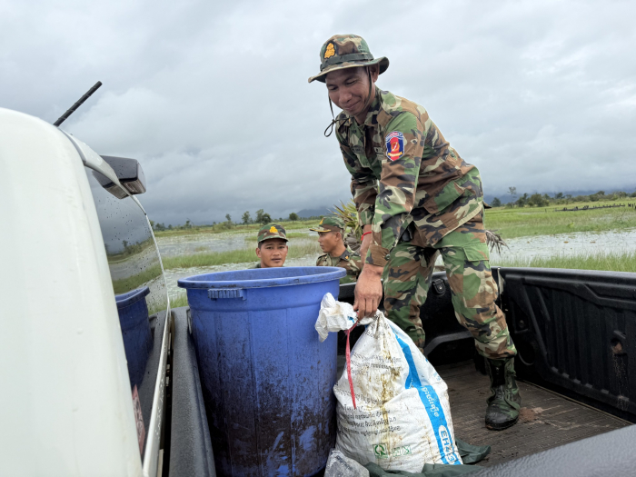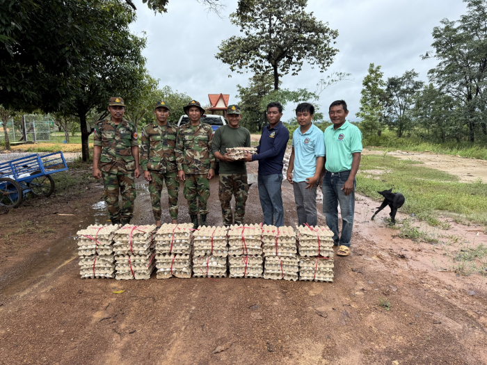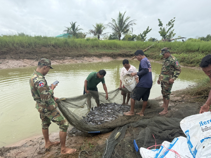 នៅថ្ងៃទី២៩ ខែកញ្ញា ឆ្នាំ២០២៥ ក្រុមការងារមន្ទីរកសិកម្ម រុក្ខាប្រមាញ់ និងនេសាទ ខេត្តឧត្តរមានជ័យ បានបន្តចុះប្រមូលផលត្រី និងស៊ុតទា ដែលបានចិញ្ចឹមនៅស្ថានីយ៍កសិកម្មកូនក្រៀល ដើម្បីយកជូនកងទ័ពជួរមុខមានស៊ុតទាចំនួន១ ៨០០គ្រាប់ និងត្រីអណ្តែង ១៤០គីឡូក្រាមសម្រាប់ជាស្បៀងបរិភោគ។