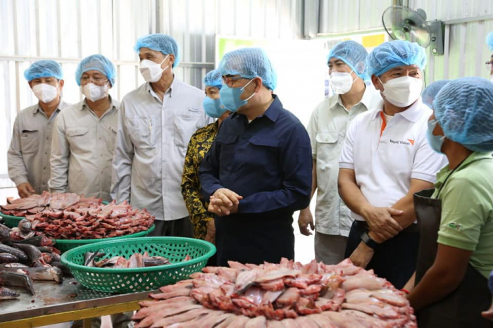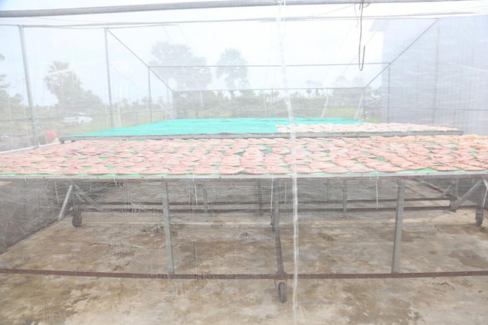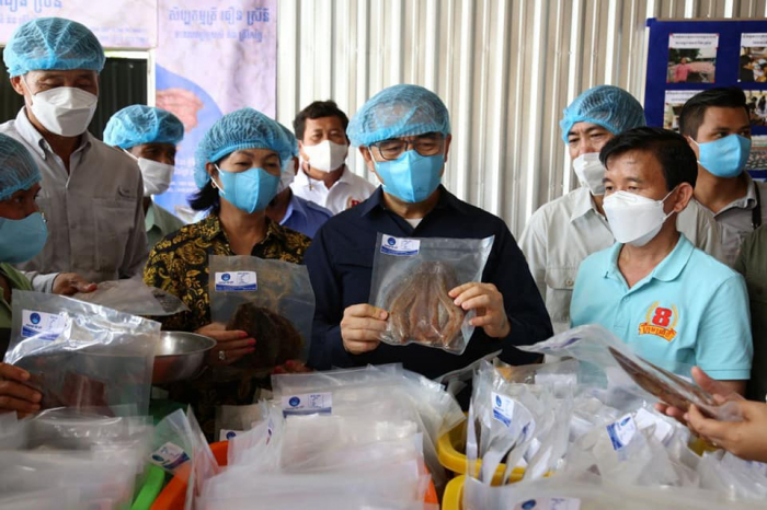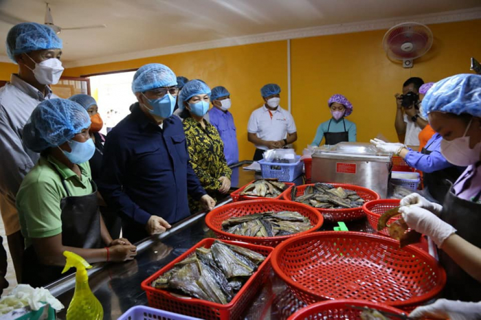 ពិនិត្យឃើញទិដ្ឋភាពជារួម ទាំងសកម្មភាពចិញ្ចឹម សកម្មភាព និងដំណើរការកែច្នៃត្រីងៀត ឯកឧត្ដមរដ្ឋមន្រ្តី បានកោតសរសើរ និងវាយតម្លៃខ្ពស់ចំពោះការខិតខំប្រឹងប្រែងប្រកាន់យករបរចិញ្ចឹមត្រី និងសិប្បកម្មកែច្នៃត្រីងៀត ដើម្បីចូលរួមចំណែកបំពេញសេចក្តីត្រូវការទីផ្សារទាំងត្រីស្រស់ និងត្រីងៀតក្នុងស្រុក ប្រើប្រាស់វត្ថុធាតុដើម (ត្រីគ្រប់ប្រភេទ) បង្កើតការងារ និងបង្កើនតម្លៃបន្ថែម ដើម្បីកំណើនសេដ្ឋកិច្ចគ្រួសារ និងសេដ្ឋកិច្ចសហគមន៍ និងជាពិសេសដើម្បីចូលរួមកាត់បន្ថយបញ្ហាទីផ្សារចំពោះត្រីស្រស់ និងកាត់បន្ថយការនាំចូល។ ឃើញច្បាស់ពីភាពជោគជ័យដែលបងស្រី និងសមាជិកសម្រេចបាននាពេលនេះ ឯកឧត្តមរដ្ឋមន្ត្រីបានលើកទឹកចិត្តឱ្យវារីវប្បកររៀបចំបណ្តុំចិញ្ចឹមត្រីដើម្បីផ្គត់ផ្គង់បរិមាណត្រីដល់សិប្បកម្មឲ្យបានគ្រប់គ្រាន់ ដើម្បីបន្តរក្សាមុខ របរចិញ្ចឹមត្រីនៅក្នុងស្រុកមាននិរន្តរភាព និងវឌ្ឍនភាព និងវិបុលភាពសេដ្ឋកិច្ច។ ឆ្លៀតយកឱកាសនេះ លោកបានណែនាំឱ្យរដ្ឋបាលជលផល និងមន្ទីរកសិកម្ម រុក្ខាប្រមាញ់ និងនេសាទខេត្ត និងសមាគមវារីវប្បករកម្ពុជាជួយលើការងារបច្ចេកទេសចិញ្ចឹម និងកែច្នៃថ្មីៗបន្ថែម ទៀតដើម្បីរក្សានិរន្តរភាពផលិតកម្មចិញ្ចឹម ហើយគួរជួយរៀបចំផែនការផលិតកម្ម ចងក្រងបណ្តុំអ្នកចិញ្ចឹម និងបញ្ចូលបច្ចេកទេសទាក់ទងការគ្រប់គ្រងទឹកកខ្វក់ និងបរិស្ថានចិញ្ចឹម ឈានឆ្ពោះទៅបំពេញឲ្យ បានគ្រប់គ្រាន់ ត្រឹមត្រូវតាមស្តង់ដារអន្តរជាតិដើម្បីឈានទៅធ្វើការនាំចេញនាពេលអនាគត។ រដ្ឋបាលជលផលត្រូវសិក្សា និងពិនិត្យលទ្ធភាពបន្ថែមក្នុងការនាំយកសមាជិកសហគមន៍វារីវប្បករនៅទូទាំងប្រទេសមកធ្វើទស្សនកិច្ចសិក្សាស្វែងយល់ និងដកស្រង់បទពិសោធន៍ពីភាពជោគជ័យរបស់បងស្រី ធ្វើនេះដើម្បីយើងទាំងអស់គ្នា ហើយយើងទាំងអស់គ្នាគឺដើម្បីវិស័យវារីវប្បកម្មកម្ពុជារីកចម្រើននាពេលអនាគត។