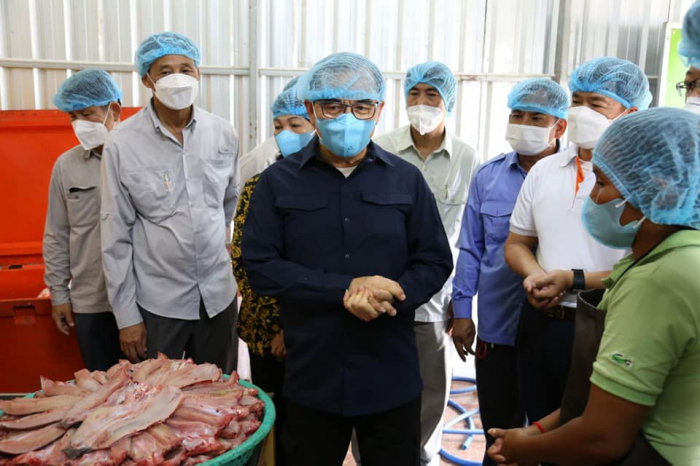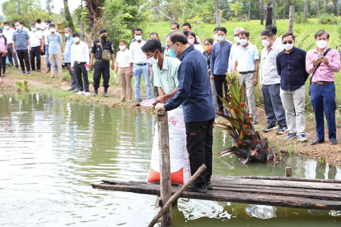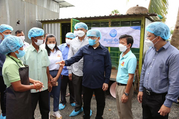 ឯកឧត្តមរដ្ឋមន្ត្រី វេង សាខុន អមដំណើរដោយឯកឧត្តមប្រតិភូរាជរដ្ឋាភិបាលកម្ពុជាទទួលបន្ទុកជាប្រធានរដ្ឋបាលជលផល និងមន្រ្តីជំនាញបានអញ្ជើញមកពិនិត្យកសិដ្ឋានចិញ្ចឹមត្រី របស់លោក ផៃ ផាត និងសិប្បកម្មកែច្នៃត្រីងៀតរបស់បងស្រី ធឿន ស្រីនី ដែលមានទីតាំងស្ថិតនៅក្នុងភូមិថ្មី ឃុំសូទិព្វ ស្រុកជើងព្រៃ ខេត្តកំពង់ចាម