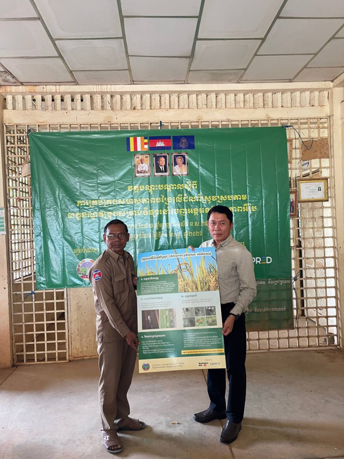វគ្គបណ្តុះបណ្តាលស្តីពីការគ្រប់គ្រងសមាសភាពចង្រៃលើដំណាំស្រូវស្របតាមលក្ខខណ្ឌតម្រូវសម្រាប់ទីផ្សារនាំចេញអង្ករទៅកាន់សហភាពអឺរ៉ុប នៅសហគមន៍កសិកម្មទំនើបស្រូវស្រុកបាណន់ ខេត្តបាត់ដំបង