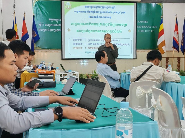 នៅថ្ងៃទី៩ ខែកញ្ញា ឆ្នាំ២០២៥ ឯកឧត្តម ហ៊ាន វណ្ណហន រដ្ឋលេខាធិការក្រសួងកសិកម្ម រុក្ខាប្រមាញ់ និងនេសាទ និងជានាយកគម្រោង CaWSIP-MAFF បានអញ្ជើញជាអធិបតីបើកសិក្ខាសាលាបណ្ដុះបណ្ដាលគ្រូបង្គោលស្តីពីបច្ចេកទេសផលិតកម្មដំណាំស្រូវចំណីនិងគ្រាប់ពូជស្រូវដោយប្រើប្រាស់បច្ចេកទេសកសិកម្មវៃឆ្លាតជាមួយនឹងអាកាសធាតុ នៅទីរួមខេត្តក្រចេះ។