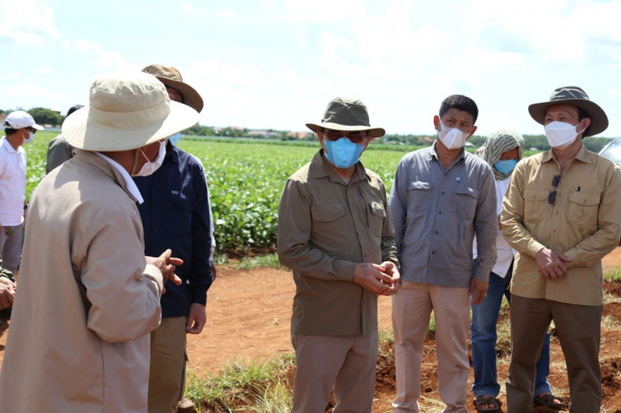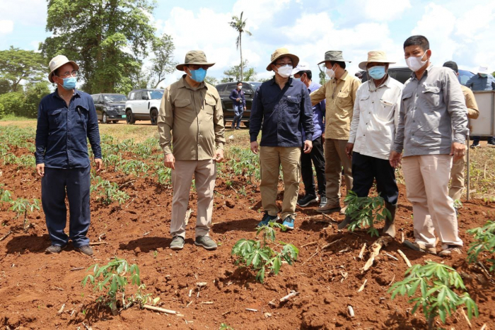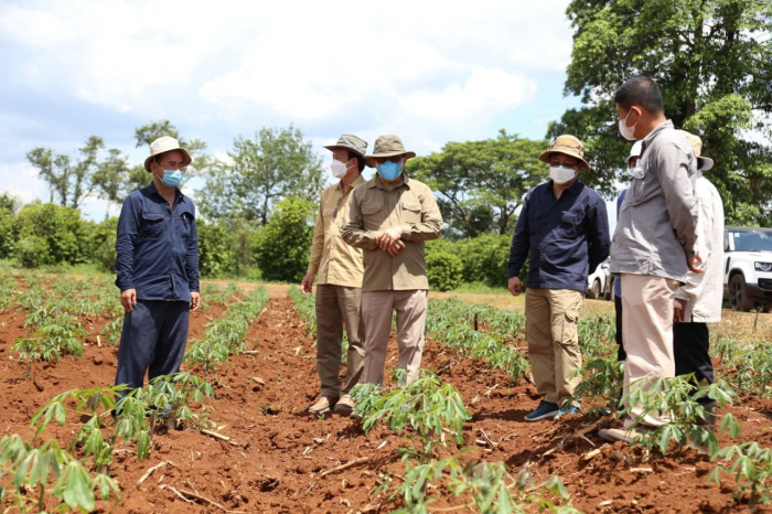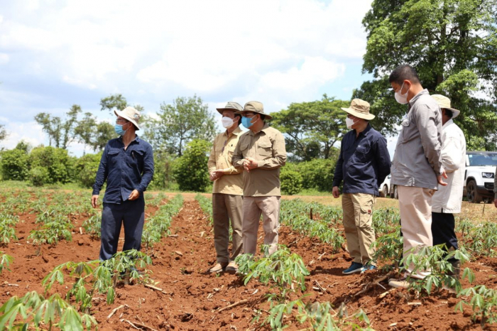 ឯកឧត្តមរដ្ឋមន្ត្រី វេង សាខុន និងសហការីបានអញ្ជើញមកពិនិត្យ និងវាយតម្លៃដោយផ្ទាល់លើវឌ្ឍនភាពនៃការងារពិសោធន៍ ស្រាវជ្រាវពូជដំឡូងមីនៅក្នុងកសិដ្ឋានផលិតពូជដំណាំកសិកម្មខ្ពង់រាបចម្ការលើ