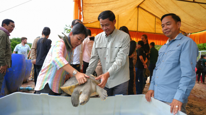 នៅថ្ងៃទី១៩ ខែកក្កដា ឆ្នាំ២០២៤ ឯកឧត្តម ឌិត ទីណា រដ្ឋមន្ដ្រីក្រសួងកសិកម្ម រុក្ខាប្រមាញ់ និងនេសាទ និងលោកជំទាវ មិថុនា ភូថង អភិបាលខេត្តកោះកុង បានអញ្ជើញជាគណៈអធិបតីក្នុងពិធីសម្ពោធស្រះចិញ្ចឹមនិងបង្កាត់ពូជអណ្ដើកហ្លួង នៅមជ្ឈមណ្ឌលអភិរក្សសត្វល្មូន ខេត្តកោះកុង របស់អង្គការ WCS។ ពិធីនេះ ក៏មានការចូលរួមផងដែរ ពីសំណាក់មន្ត្រីជាន់ខ្ពស់នៃក្រសួងកសិកម្ម រុក្ខាប្រមាញ់ និងនេសាទ រដ្ឋបាលជលផល អាជ្ញាធរមូលដ្ឋានក្នុងខេត្តកោះកុងនិងខេត្តព្រះសីហនុ ប្រជាសហគមន៍មូលដ្ឋាន និងតំណាងនៃ Mandai Nature ដែលជាម្ចាស់ជំនួយគាំទ្រការងារអភិរក្សសត្វល្មូនដែលរួមមានអណ្តើកហ្លួងនិងក្រពើត្រីនៅមជ្ឈមណ្ឌលអភិរក្សសត្វល្មូន ខេត្តកោះកុង និងនៅតាមប្រព័ន្ធព្រែកស្រែអំបិល។