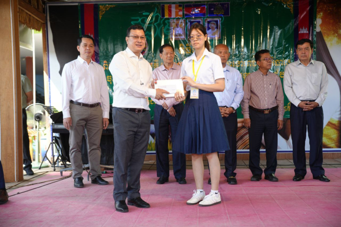 ជាទីបញ្ចប់ ឯកឧត្តមរដ្ឋមន្ដ្រី បានប្រគល់ជូននូវរង្វាន់កុំព្យូទ័របន្ទះ(Tablet) ដែលជាអំណោយដ៏ថ្លៃថ្លារបស់ សម្តេចមហាបវរធិបតី ហ៊ុន ម៉ាណែត និងលោកជំទាវបណ្ឌិត ពេជ ចន្ទមុន្នី ដល់សិស្សនិទ្ទេស A និងលេីកទឹកចិត្តដល់លោកគ្រូ អ្នកគ្រូ អាណាព្យាបាលទាំងអស់ បន្តខិតខំបង្ហាត់បង្រៀន យកចិត្តទុកដាក់ និងកសាងធនធានមនុស្សបន្ថែមសម្រាប់សង្គមជាតិ៕