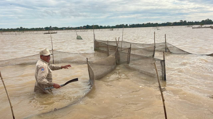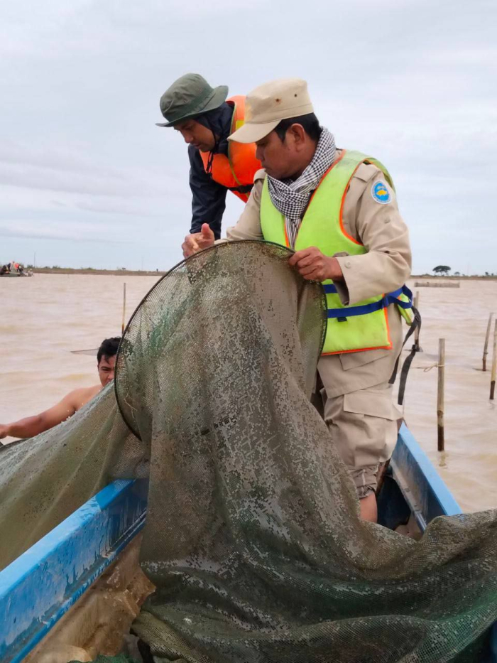 ឯកឧត្តមអនុរដ្ឋលេខាធិការ ទឹម បូរក្ស អញ្ជើញដឹកនាំកម្លាំងជំនាញ ចុះបង្ក្រាប​បទល្មើសជលផល និងពង្រឹងការអនុវត្តច្បាប់ និងការគ្រប់គ្រង និងអភិរក្សធនធានជលផល នៅសង្កាត់ជើងទឹក ក្រុងព្រៃវែង ខេត្តព្រៃវែង