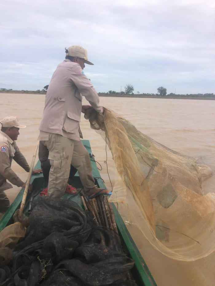 ឯកឧត្ដមអនុរដ្ឋលេខាធិការ ទឹម បូរក្ស ដឹកនាំក្រុមការងារចុះស្រាវជ្រាវ ត្រួតពិនិត្យ ទប់ស្កាត់និងបង្ក្រាបបទល្មើសជលផល នៅចំណុចព្រែកផ្លូវក្របី ភូមិព្រៃកន្លោង ខេត្តព្រៃវែង
