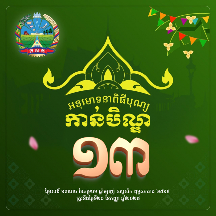 សូមអនុមោទនា ពិធីកាន់បិណ្ឌ ១៣ ថ្ងៃសោរ៍ ១៣រោច ខែភទ្របទ ឆ្នាំម្សាញ់ សប្តស័ក ពុទ្ធសករាជ ២៥៦៩ ត្រូវនឹងថ្ងៃទី២០ ខែកញ្ញា ឆ្នាំ២០២៥