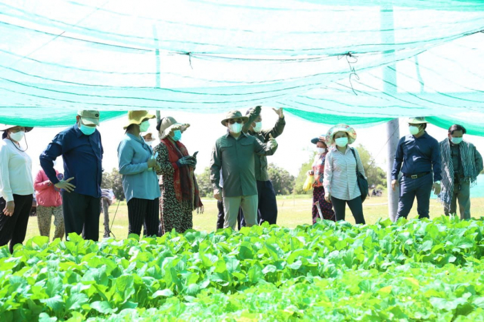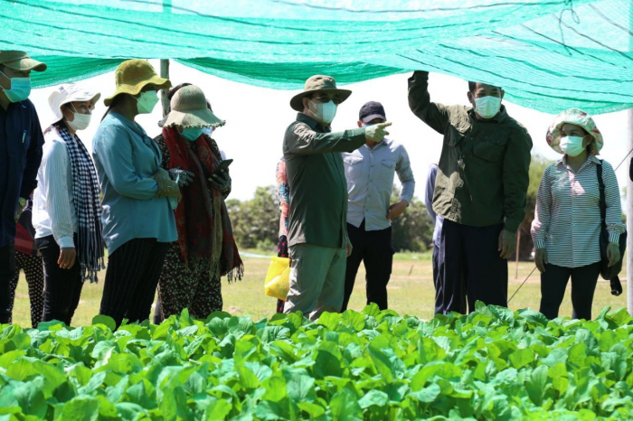 ចេញពីស្ថានីយដាំឈើម្សៅក្រដាស ហ៊ុន សែន មា នក ឯកឧត្តមរដ្ឋមន្ត្រី និងសហការីបានឈានចូលពិនិត្យការងារដាំដុះបន្លែសុវត្ថិភាពរបស់សហគមន៍កសិកម្មទឹកហូតមានជ័យក្តីសង្ឃឹម ស្ថិតនៅភូមិត្រពាំងក្រពើ ឃុំទឹកហូត ស្រុករលាប្អៀរ ខេត្តកំពង់ឆ្នាំង។