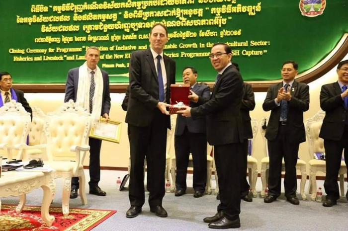 ៥-គម្រោងទី៥÷ “ការជំរុញកំណើនវិស័យកសិកម្មប្រកបដោយចីរភាព និងបរិយាប័ន្ន នៃអនុវិស័យជលផល និងផលិតកម្មសត្វ” ដែលយើងកំពុងរៀបចំបិទបញ្ចប់នាពេលនេះ EU បានផ្តល់ហិរញ្ញប្បទានឥតសំណងចំនួន ២០លានអឺរ៉ូ និងរាជរដ្ឋាភិបាលចំនួន៦លានអឺរ៉ូ សម្រាប់ ៥ឆ្នាំ (២០១៤-២០១៨)។