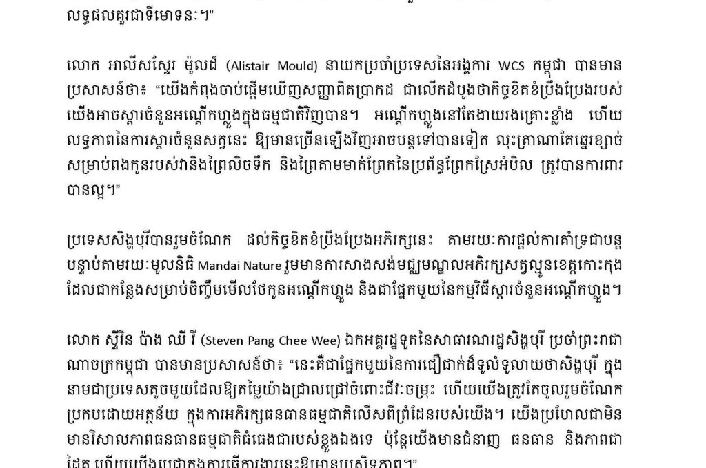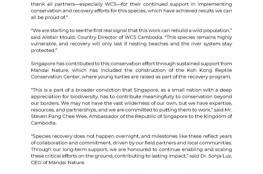 ការលែងអណ្តើកហ្លួង នាពេលថ្មីៗនេះអាចប្រព្រឹត្តទៅបាន ដោយសារ កិច្ចខិតខំប្រឹងប្រែងដ៏យូរអង្វែងដើម្បីស្តារចំនួនសត្វអណ្តើកនេះ ចាប់ផ្តើមបង្ហាញសញ្ញានៃវឌ្ឍនភាពដែលទទួល បានដោយការព្យាយាមយ៉ាងអំណត់និងមុតមាំបំផុត៕