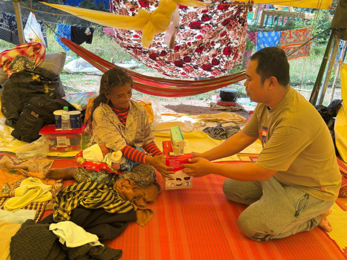 ក្រុមការងាររាជរដ្ឋាភិបាលចុះមូលដ្ឋានស្រុក រួមជាមួយថ្នាក់ដឹកនាំរដ្ឋបាលស្រុក និងអាជ្ញាធរភូមិ-ឃុំ បានបន្តនាំយកស្បៀងអាហារ គ្រឿងឧបភោគបរិភោគ ភេសជ្ជៈ និងសម្ភារប្រើប្រាស់ចែកជូនប្រជាជនដែលបានភៀសខ្លួនមកស្នាក់នៅតាមមណ្ឌលសុវត្ថិភាពក្នុងស្រុកអូរជ្រៅ ខេត្តបន្ទាយមានជ័យ។