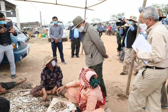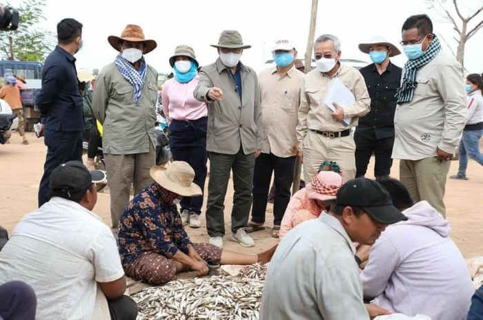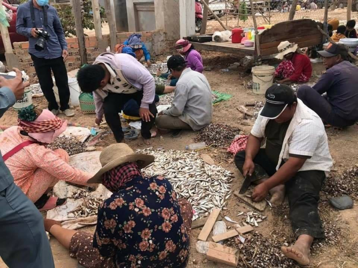 ឯកឧត្តមរដ្ឋមន្ត្រី វេង សាខុន អមដំណើរដោយសហការីបានអញ្ជើញមកពិនិត្យសកម្មភាពរបស់បងប្អូនប្រជាពលរដ្ឋកំពុងមមាញឹកទិញត្រីធ្វើផ្អក ប្រហុក ត្រីងៀត និងត្រីឆ្អើរ ទុកជាស្បៀងប្រចាំឆ្នាំ