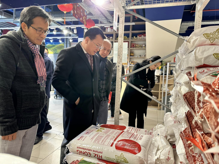 ចំពោះទីផ្សារអង្ករ «ផ្ការំដួល» ដែលកម្ពុជានឹងជំរុញការនាំចេញទៅកាន់ទីផ្សារប្រទេសបារាំងនាពេលខាងមុខ ឯកឧត្តមសង្កត់ធ្ងន់ពីការចុះបញ្ជីម៉ាកសម្គាល់ផលិតផលខ្មែរពិត ដែលអាចឱ្យអតិថិជនទុកចិត្តនិងចំណាំ តាមការស្នេីសុំរបស់សមាគមខ្មែរនៅប្រទេសបារាំង។