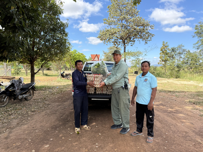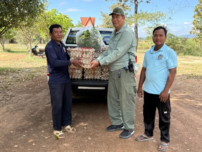 សូមជម្រាបជូនថា គិតត្រឹមថ្ងៃទី៥ ខែធ្នូ ឆ្នាំ២០២៥ ក្រោមស្មារតី «ខ្មែរតែមួយ» ដែលជាអំណោយរបស់ឯកឧត្តម ឌិត ទីណា រដ្ឋមន្ត្រីក្រសួងកសិកម្ម រុក្ខាប្រមាញ់ និងនេសាទ បាននាំយកស្បៀងបរិភោគជូនវីរកងទ័ពប្រចាំការនៅគោលដៅទិសខេត្តឧត្តរមានជ័យ សរុប៤១លើករួមមាន៖ ស្ពៃក្រញ៉ាញ់ចំនួន ៧ ៤៨០គីឡូក្រាម ត្រកួន ៧ ៨១០គីឡូក្រាម ស្ពៃចង្កឹះចំនួន៩៤០ គីឡូក្រាម គោសាច់៣ក្បាល ស៊ុតទា ៣៧ ៧៤០គ្រាប់ ទំពាំង ២០គីឡូក្រាម និងត្រីអណ្ដែងចំនួន៨២៦ គីឡូក្រាម៕